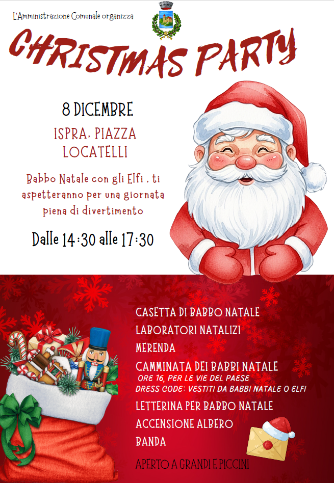 Babbo Natale e gli Elfi ti aspettano, lunedì 8 dicembre a partire dalle ore 14,30 in Piazza Locatelli, per una giornata piena di divertimento: